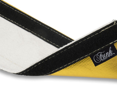 Funk Motorsport’s Velcro Gold Heat Wrap Sleeving allows both protection of vital lines whilst providing great visual benefits. Much like Funk Motorsport’s Gold Heat Tape, the Gold Heat sleeving uses a reflective Gold laminate, on top of woven heat barrier fibres, to ensure optimal performance. Like the Gold Heat Tape, the Velcro sleeving will withstand direct heat of up to 250°C whilst able to reflect away up to 95% of all radiant heat. Created using a malleable high temperature, heat reflective material this shroud is designed to easily slip over cables and lines in situ without the need for any line or cable disconnecting.